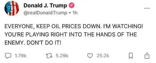 而这一幕显然可能将不为特朗普所乐见。在周一发表的社交媒体帖子中,特朗普就用其标志性的全大写字母发文称,“大家都注意点,把油价压下来,我在看着!你们这是在帮敌人,别这么做!”