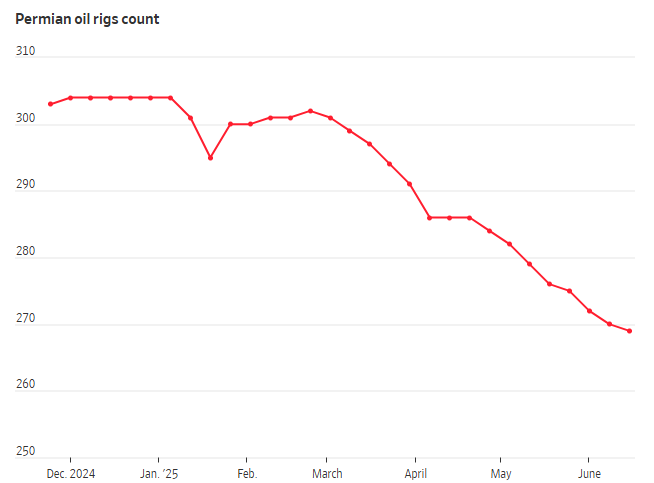 包括Diamondback能源和EOG资源在内的大型钻探商均表示,今年将削减支出。据贝克休斯数据,截至上周,二叠纪盆地活跃钻机数量已降至2021年底以来最低水平。