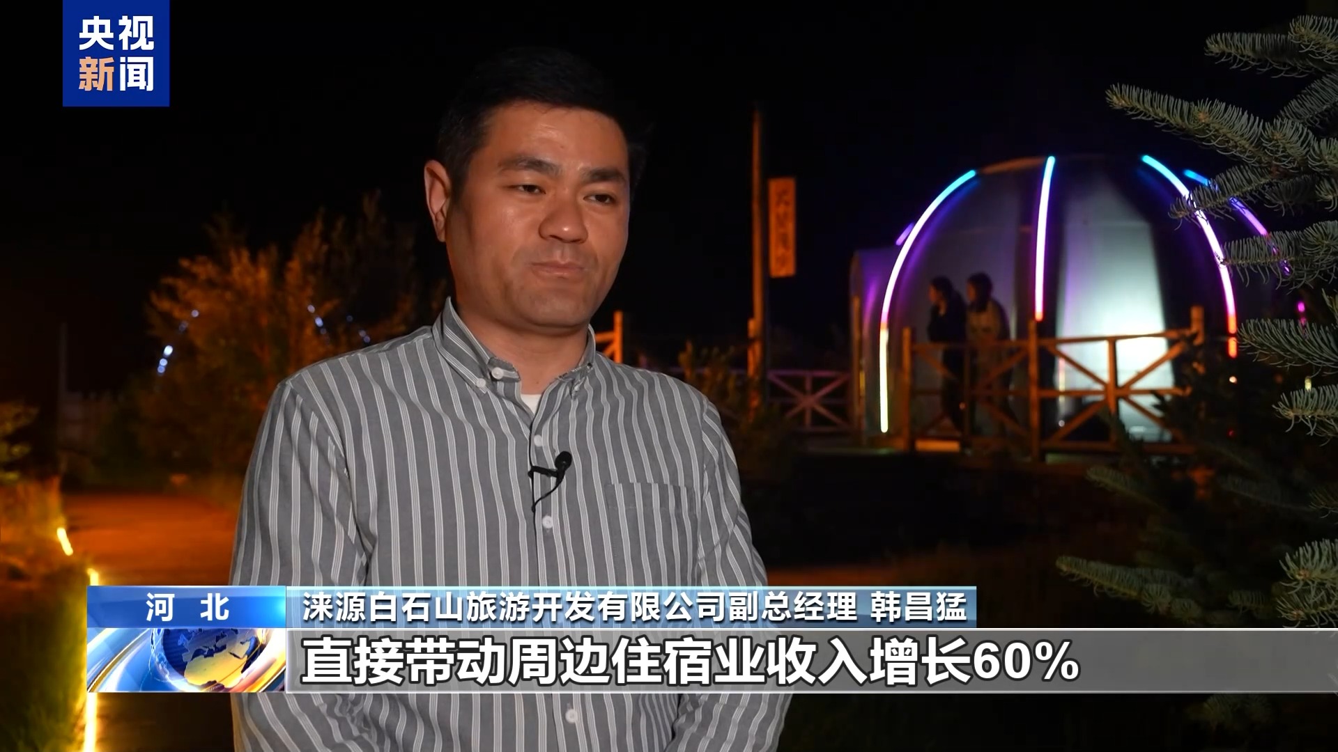 涞源白石山旅游开发有限公司副总经理 韩昌猛:过夜游客占比从过去的10%增长至35%,直接带动周边住宿业收入增长60%。