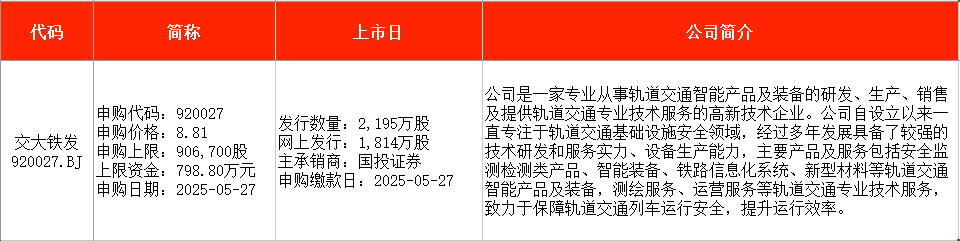 本周新股申购迎来“充电模块第一股”、全球智能影像设备行业领军企业,以及国铁集团、中国铁建、中国中铁等的供应商。
