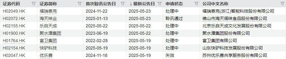同时,佛山市海天调味食品股份有限公司通过港交所聆讯。而苏州优乐赛共享服务股份有限公司的申请失效。
