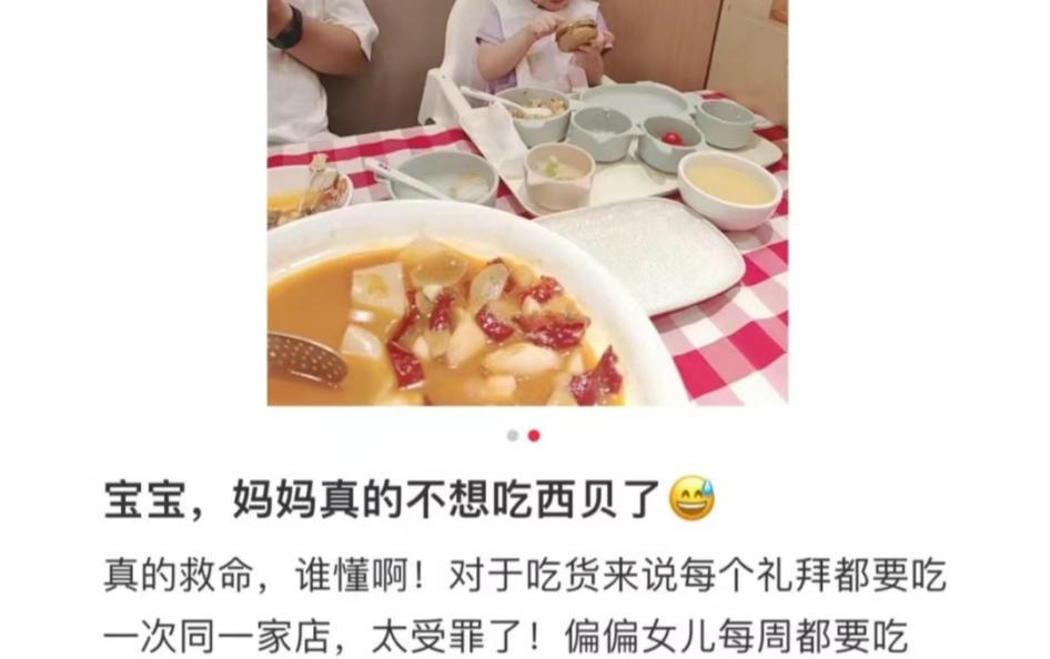 一位家长就曾表示,每个星期一都是孩子的“西贝日”,每月4次更是雷打不动。尽管闭着眼已经能把菜单倒背如流,但孩子一张嘴还是:去西贝!