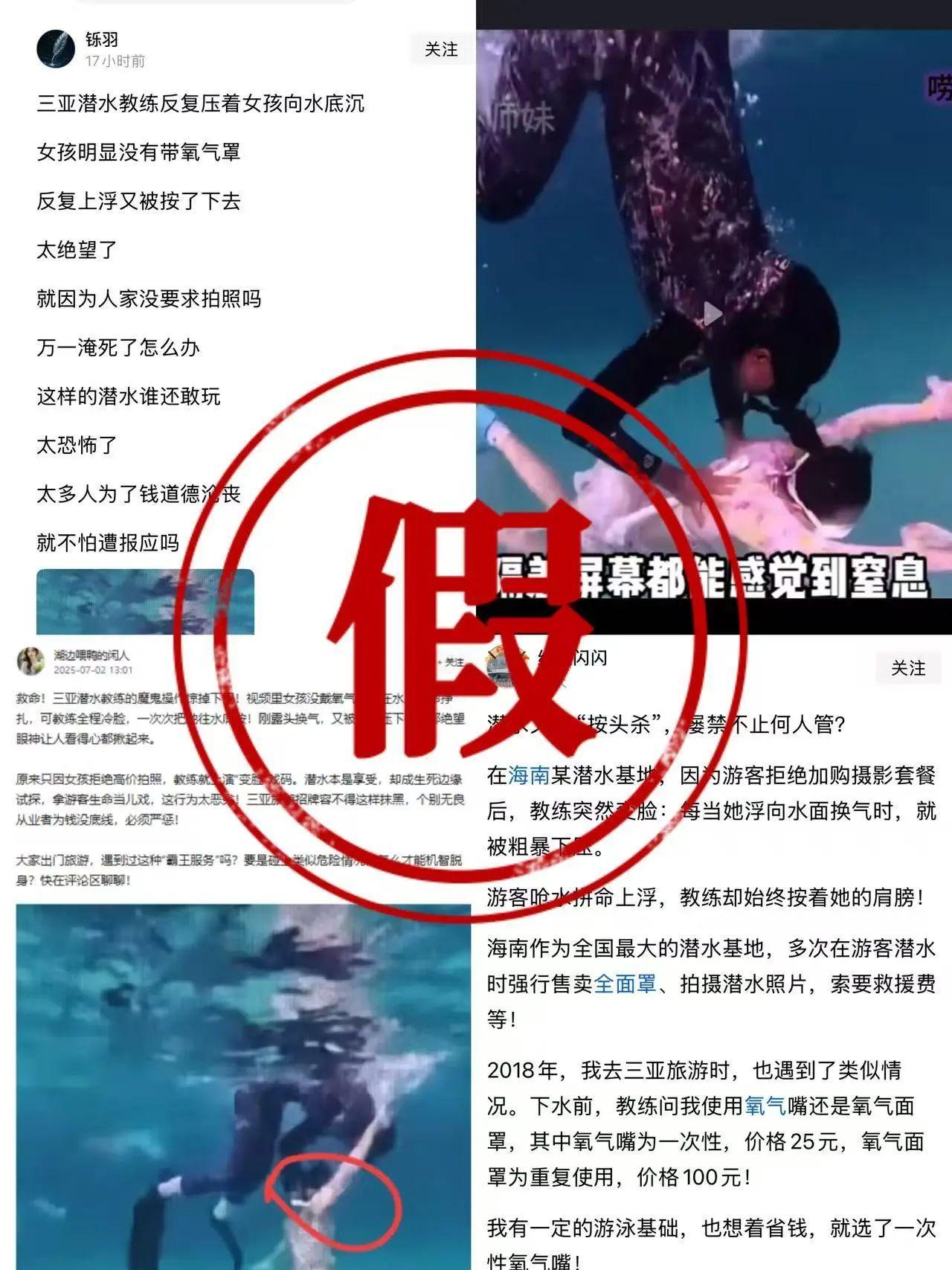 南都“真假即时查”栏目此前报道,7月5日,三亚市公安局发布通报称,近日网络流传的“三亚潜水教练反复压女孩向水底沉”是虚假信息。