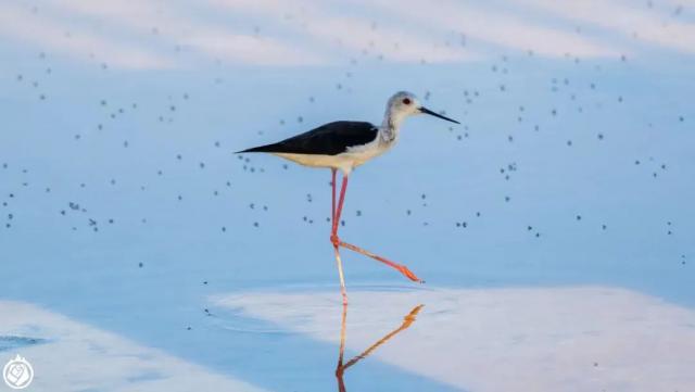 黑翅长脚鹬身边密密麻麻的黑点,就是盐水泡子里羽化的昆虫。这个场景让人一看就痒,但让鸟一看就胃口大开。非本次拍摄。