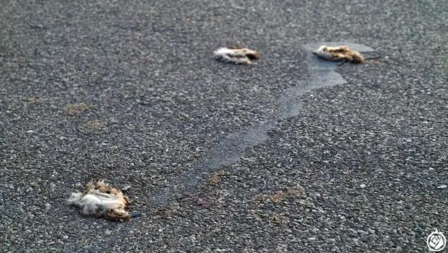 可怕的是,路上有了尸体,一些机会主义者,例如乌鸦、椋鸟、鸥类会飞来捡着吃。于是,这些异常聪明的鸟类也有被撞死。