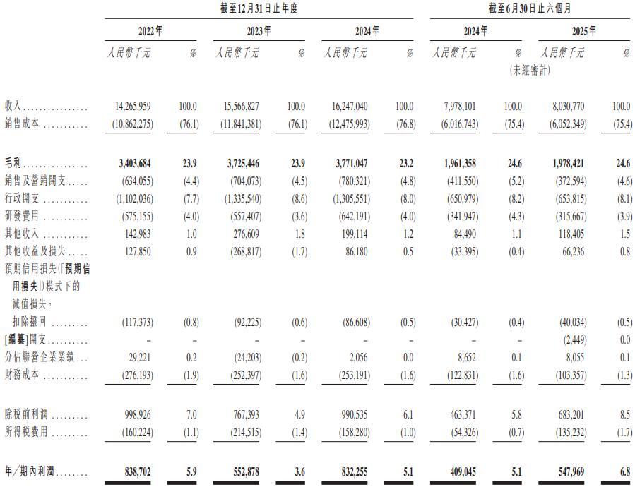 招股书显示,2022年至2024年,卧龙电驱的营业收入分别为142.66亿元、155.66亿元、162.47亿元,期内利润分别为8.39亿元、5.53亿元、8.32亿元。2025年上半年收入则为80.31亿元,同比增长0.66%;期内利润为5479.69万元,同比增长33.96%。